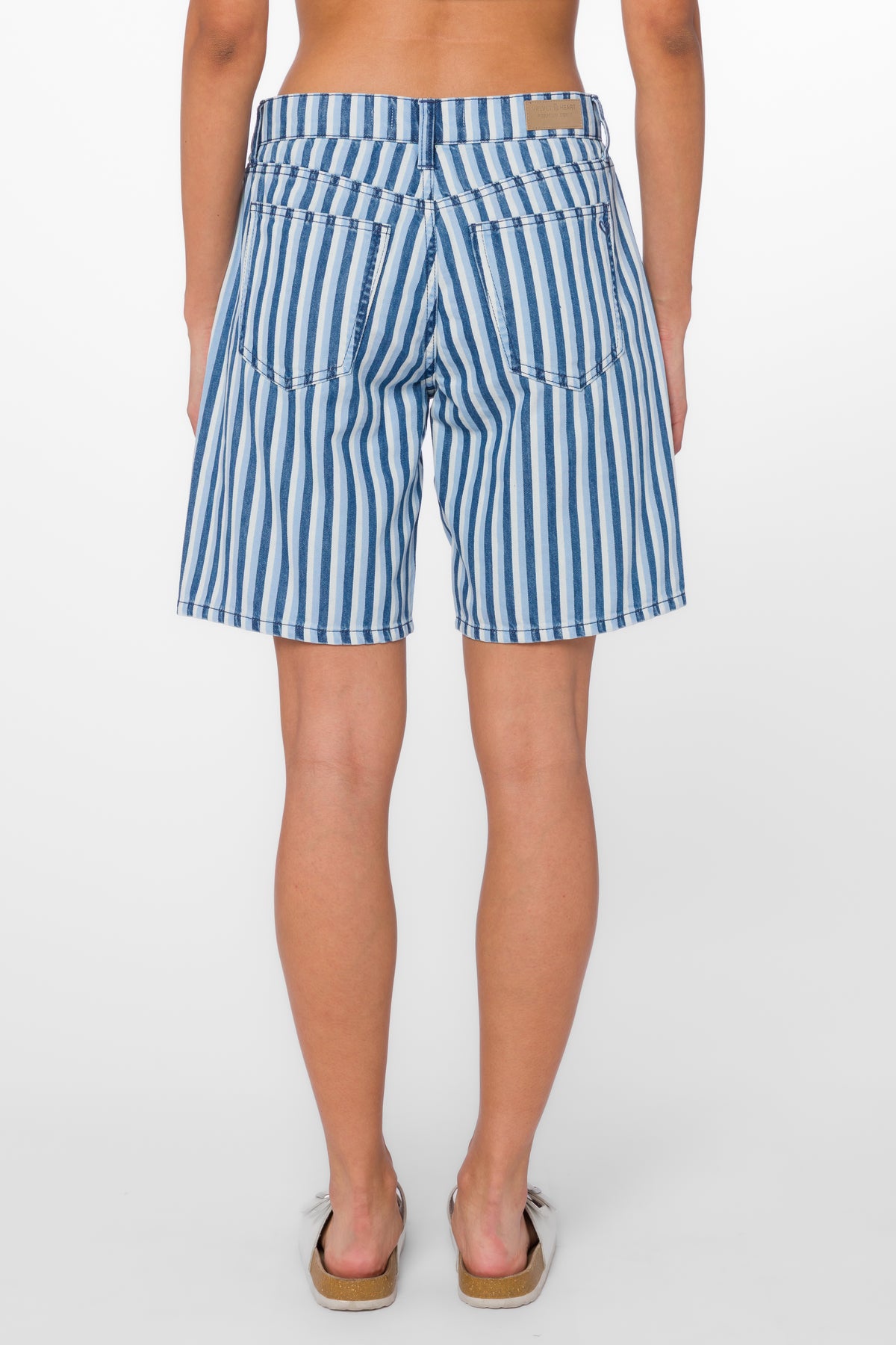 These mid-rise striped Bermuda shorts feature classic 5-pocket styling, a relaxed, knee-grazing length and are crafted from soft flexible denim.