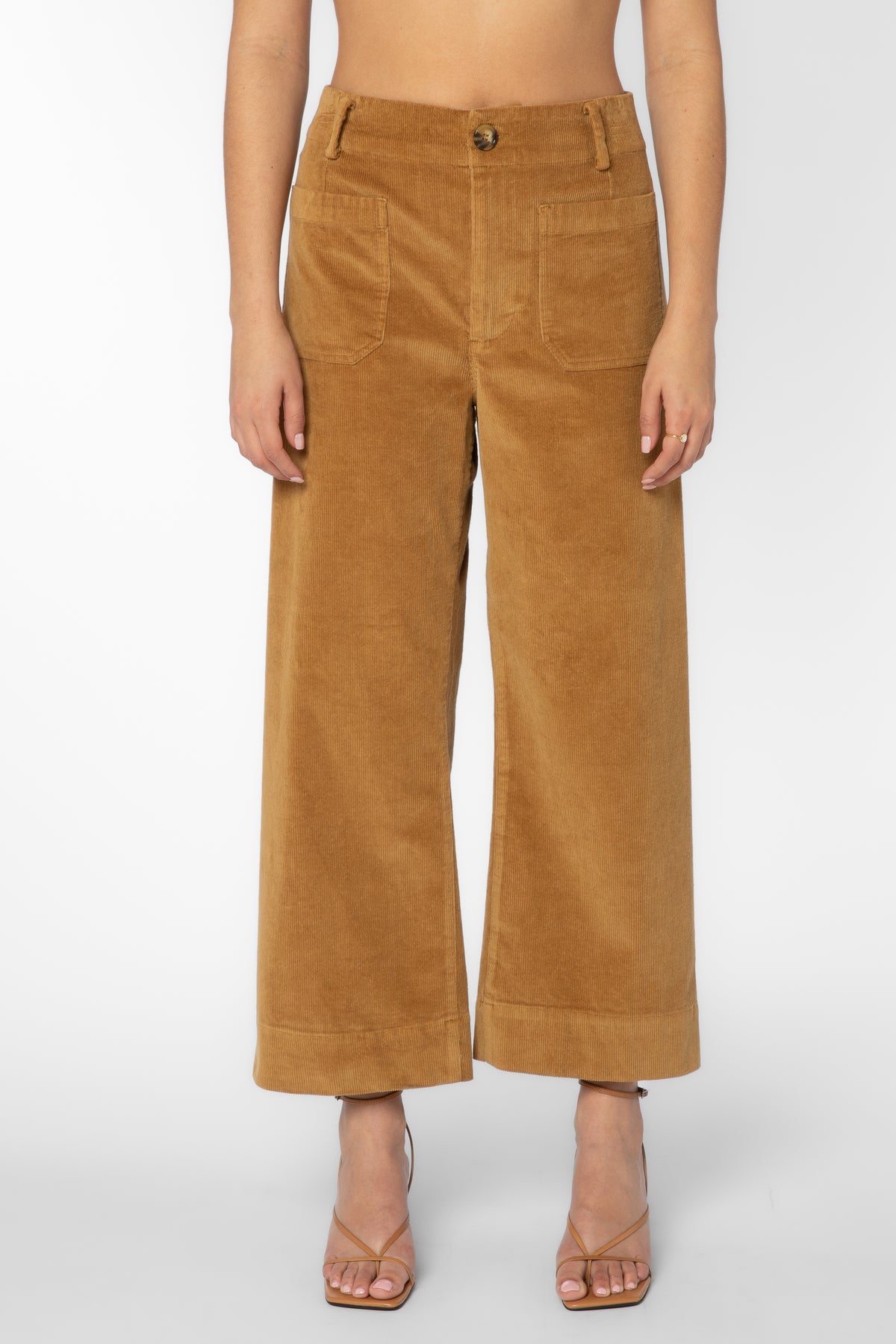 These corduroy cropped pants feature a wide-leg silhouette, front and back pockets and a medium weight feel with slight stretch.