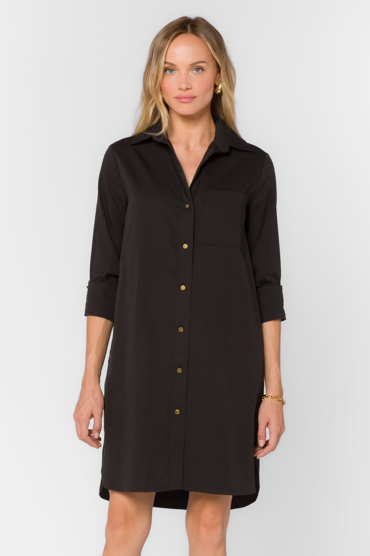 This long sleeve shirt dress features a collar, high low hem, single chest pocket and made from a breathable, medium-weight fabric with relaxed structure.