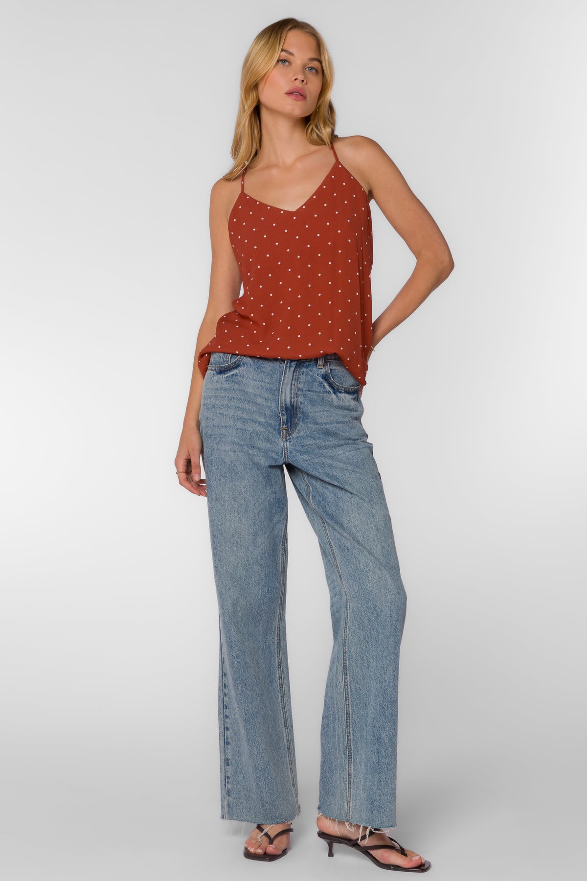 The Moxie Tajin Dotted Cami features a racer back design, allowing for a comfortable and flexible fit. Perfect for any activity, this cami provides full freedom of movement while still maintaining a stylish look. Upgrade your wardrobe with this versatile piece.