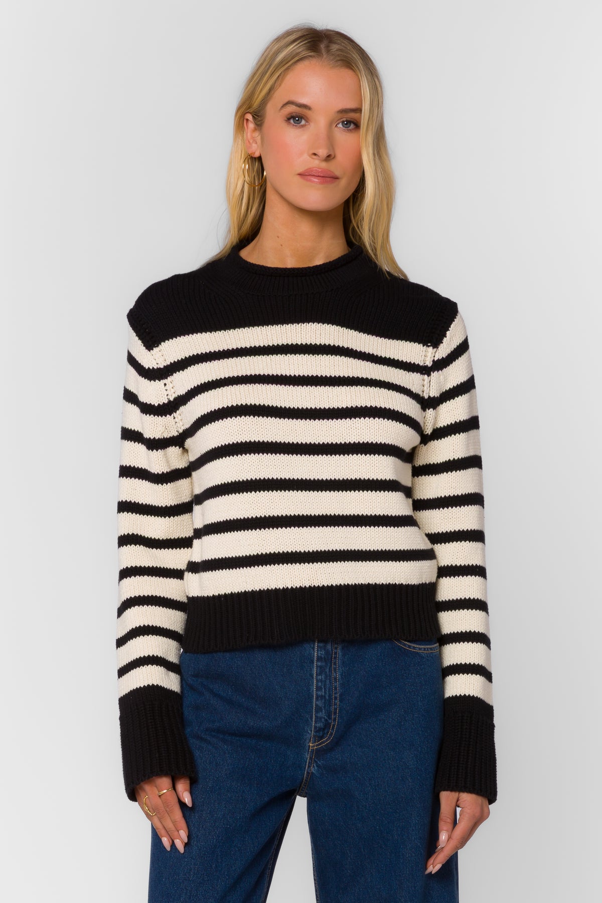 This chunky striped sweater features a rolled neck, long sleeves and a cropped fit.