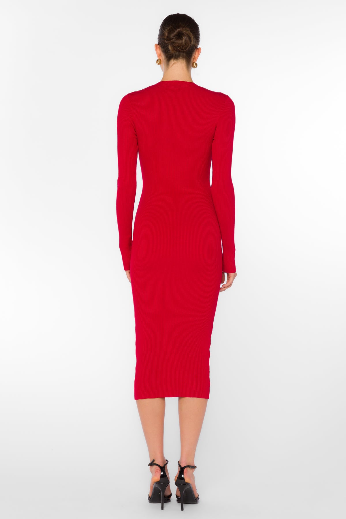 This long sleeve V-neck ribbed bodycon midi dress features acurve-hugging fit and comfortable stretch.