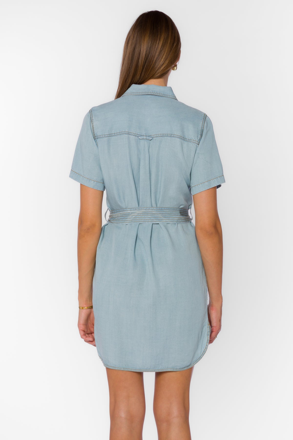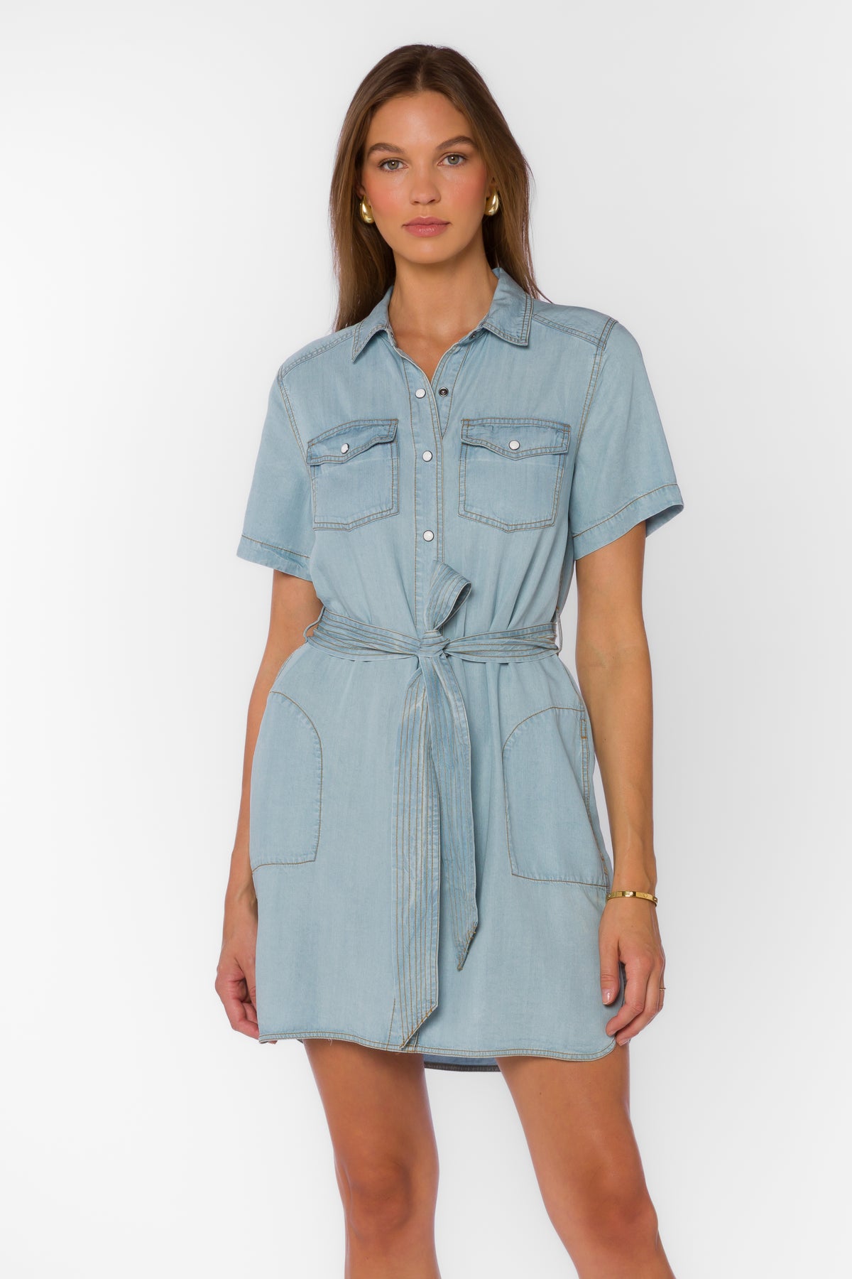 The Aprille Mini Shirtdress is a western-inspired style with short sleeves, snap button closure, and a self belt to define the waist. Made from smooth, medium-weight fabric, it brings effortless polish with a laid-back edge.