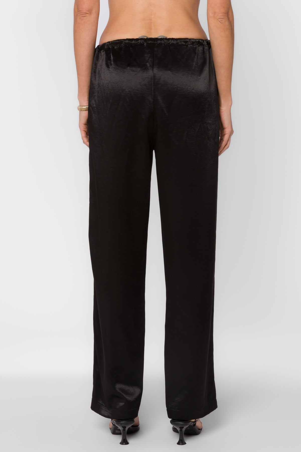 These pull-on satin pants feature a drawstring waist, straight leg, and pintuck detail, light weight with a smooth feel.