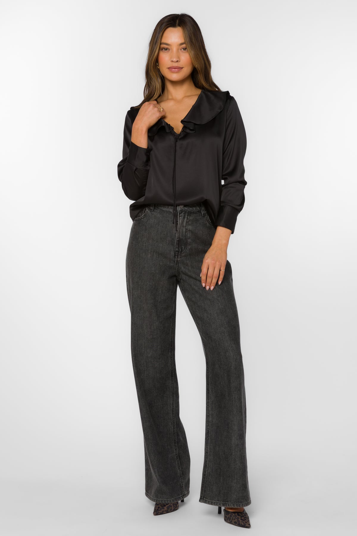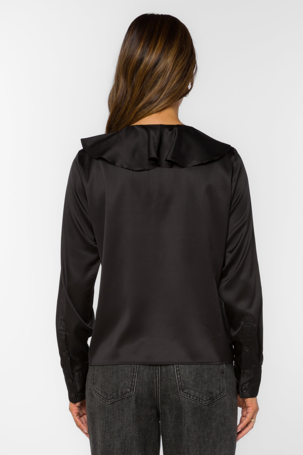 Long sleeve ruffle neck blouse features a relaxed pop-over design and is crafted from a lightweight smooth fabric with graceful movement.