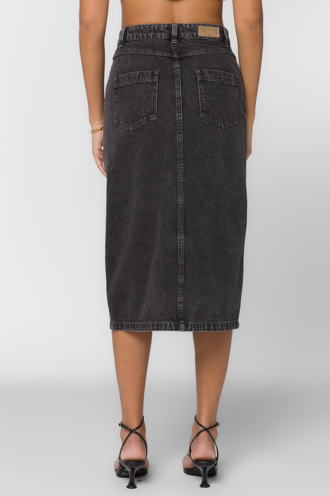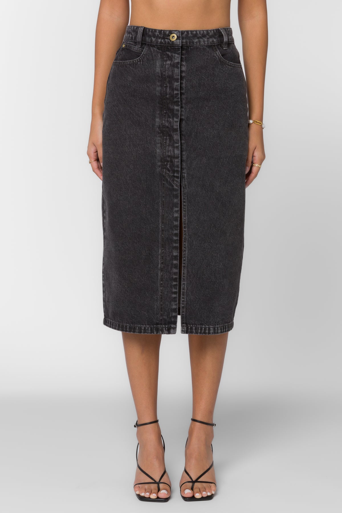 This midi denim pencil skirt features a flattering slim fit with a front slit for ease of movement, crafted from 100% cotton for a classic, structured feel.
